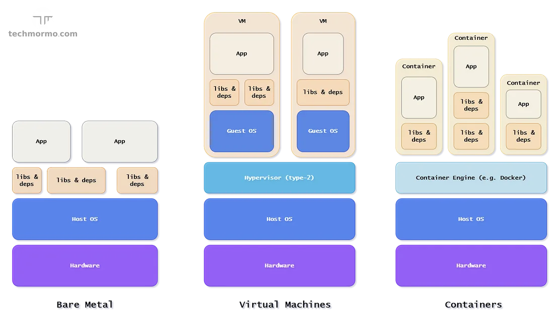 With a bare metal deployment, one gets access to a server (bought or rented by a cloud provider), installs the operating system and needs to manage everything necessary to run the application, like libraries, dependencies, packages, services, before running the actual business app.