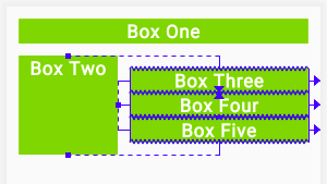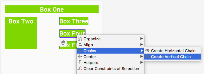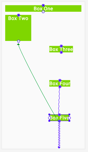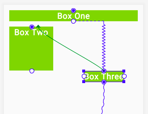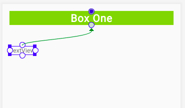 2 - Click the top constraint handle of the view and drag it up. A constraint line appears. Connect the constraint line to the bottom of the Box One textview, as shown below.