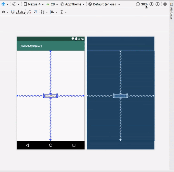 on the right side of the toolbar, until the Hello World text is visible inside its text view.