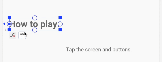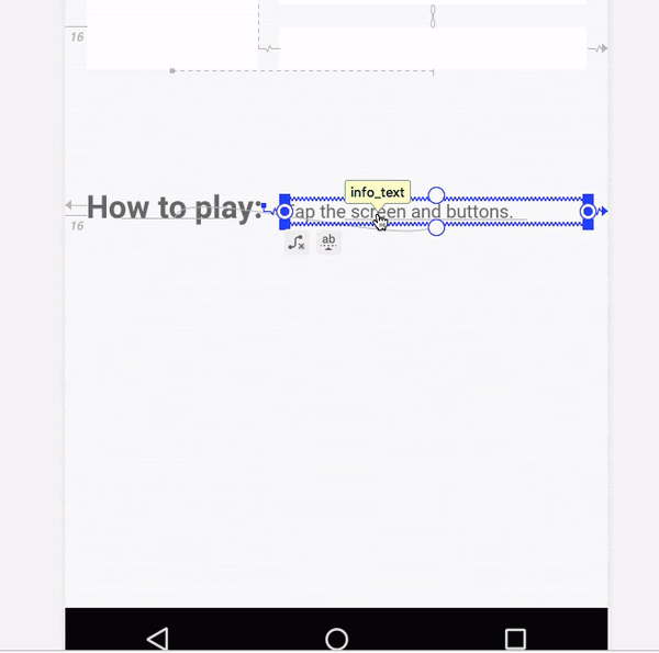 3 - In the design editor, click the new text view, then hold the pointer over the dot on the top side of the text view. This dot, shown below, is called a constraint handle.