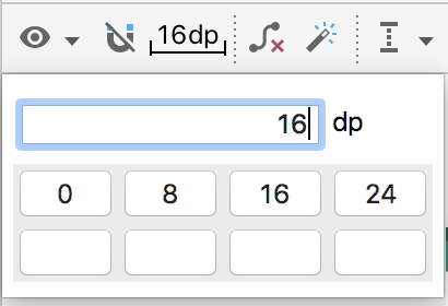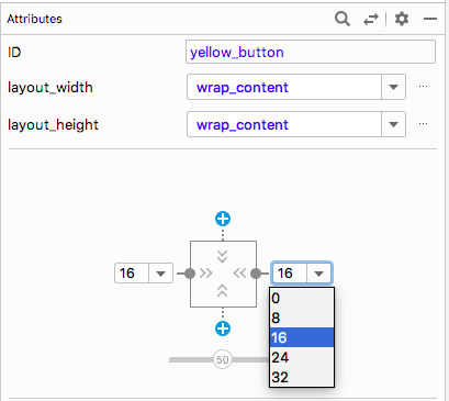 2 - For the left, right, and top margins, select 16dp from the drop-down menu in the view inspector. For example, in the following screenshot you are adding layout_marginEnd (layout_marginRight).