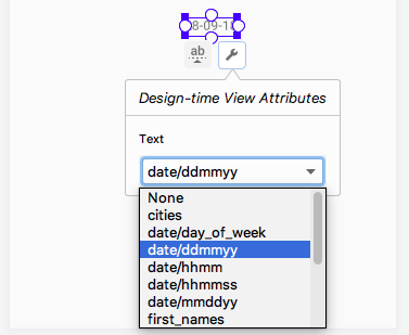 3 - Select a type of the sample data from the drop-down list. For example, if you set text sample data to date/mmddyy, today’s date is displayed in the design.