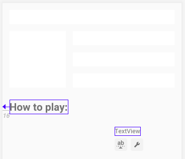1 - Drag another text view from the Palette pane into the design editor. Place the view next to and below the label_text text view, as shown below. This new text view is for the help info that the user will see. Make sure that the new view is vertically offset from the label_text view, so that you can see what happens when you create the baseline constraint.