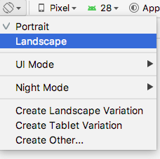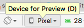 4 - Switch back to the Design tab. At the top of the design editor, click the Device for preview (D) button. A list of device types with different screen configurations is displayed. The default device is Pixel.