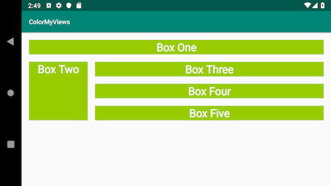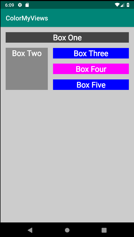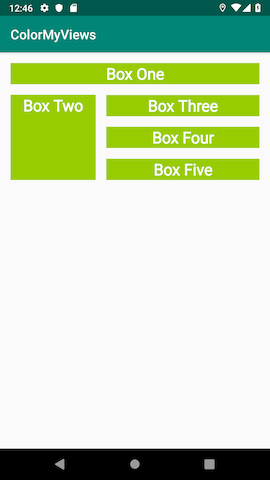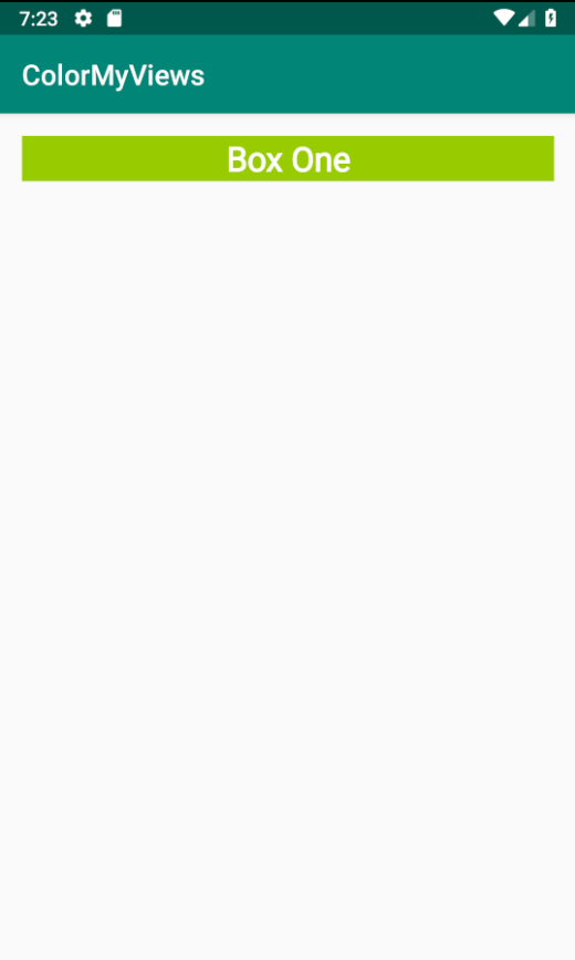 6 - Run your app. You see a styled green text view with the text “Box One”.