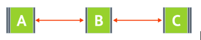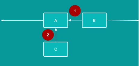 1 - Horizontal constraint: B is constrained to stay to the right of A. (In a finished app, B would need at least one vertical constraint in addition to this horizontal constraint.)