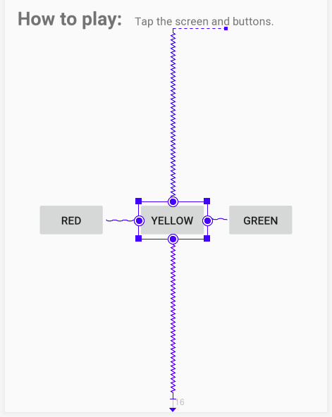 6 - Change the vertical bias of the yellow_button to 100 (1.0 in the XML), to drop down the buttons to the bottom of the layout.