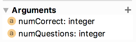4 - Click the + icon to add an argument. Name the argument numQuestions and set the type to Integer, then click Add. This argument represents the number of questions the user answered.