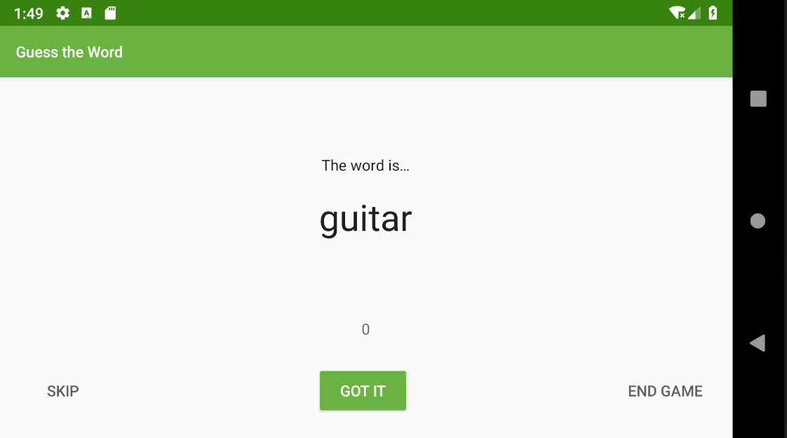 In this task, you locate and run your starter code for the previous project. You can use the GuessTheWord app that you built in previous project as your starter code, or you can download a starter app.