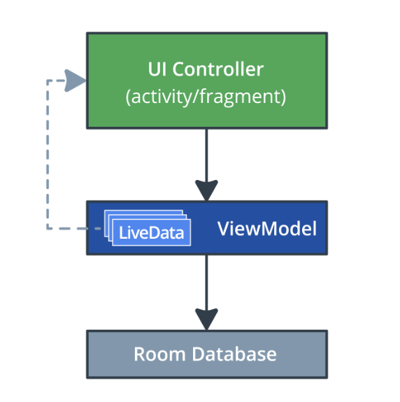 This app uses a simplified architecture with a UI controller, view model and LiveData, and a Room database to persist sleep data.