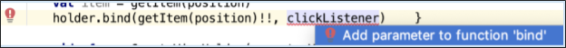 Giving the lambda that handles the click a name, clickListener , helps keep track of it as it is passed between classes. The clickListener callback only needs the night.nightId to access data from the database. Your finished SleepNightListener class should look like the code below.