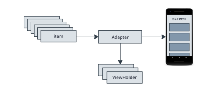 -A view holder. The view holder extends the ViewHolder class. It contains the view information for displaying one item from the item’s layout. View holders also add information that RecyclerView uses to efficiently move views around the screen.