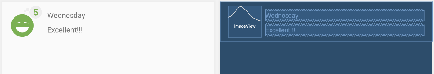 Switch to the Design tab in Android Studio. In design view, your layout looks like the screenshot on the left below. In blueprint view, it looks like the screenshot on the right.