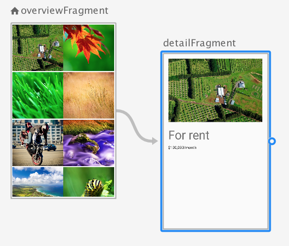 And finally, you create a detail view for an individual property, and you connect the icons on the overview grid to that detail fragment with navigation: