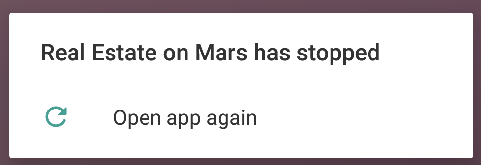 • Compile and run the MarsRealEstate app. Note that the app closes immediately with an error.