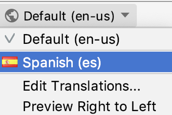 So far, you’ve just changed the direction of the default language used for the app. For a production app, you would send the strings.xml file to a translator to have it translated to a new language. For this project, the app provides a strings.xml file in Spanish (we used Google Translate to generate the translations, so they’re not perfect.).