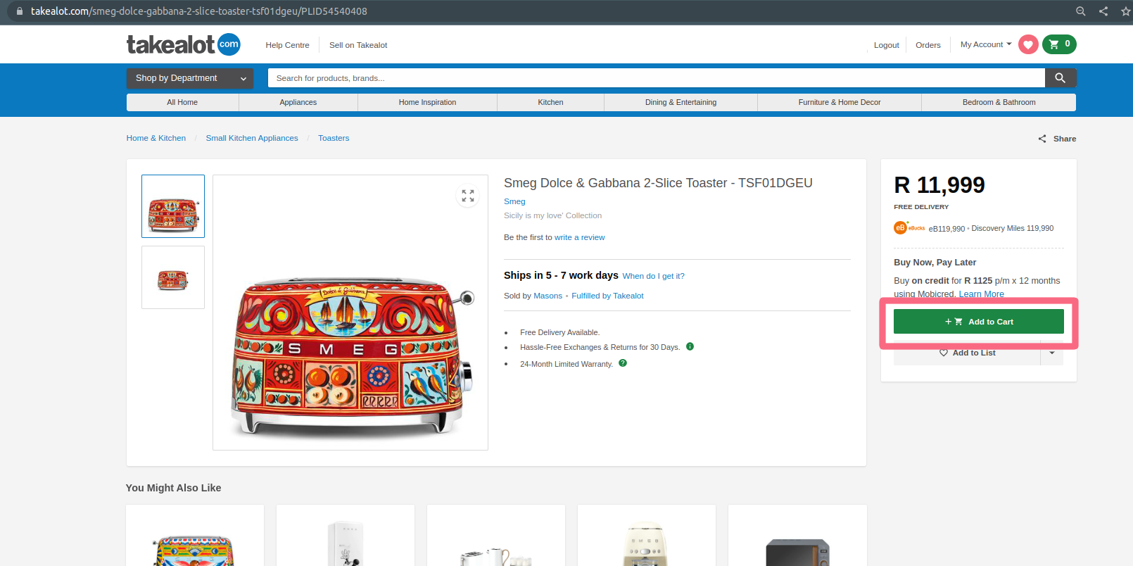 If you add a kettle to your shopping cart then Takealot will check whose shopping cart you are trying to add it to. If it is your own cart then it’ll let you do that.